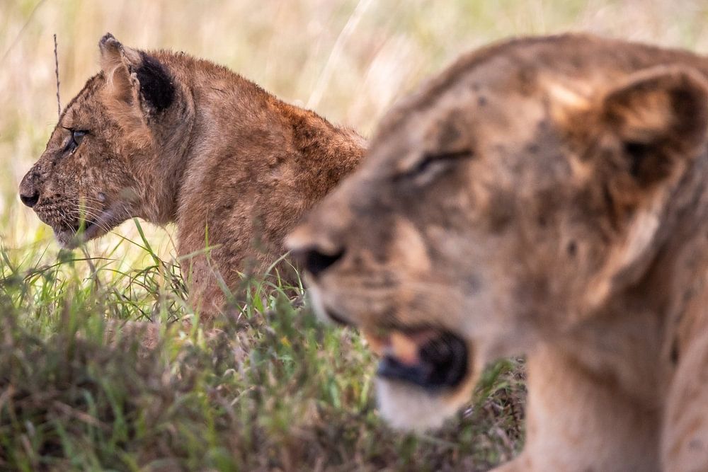 In the end, I succeeded well in capturing exactly this unique atmosphere of wild animals. Here you see a lion cub behind the mother