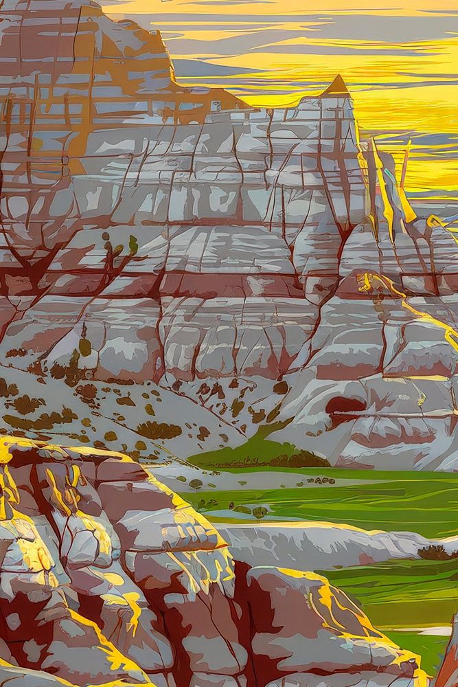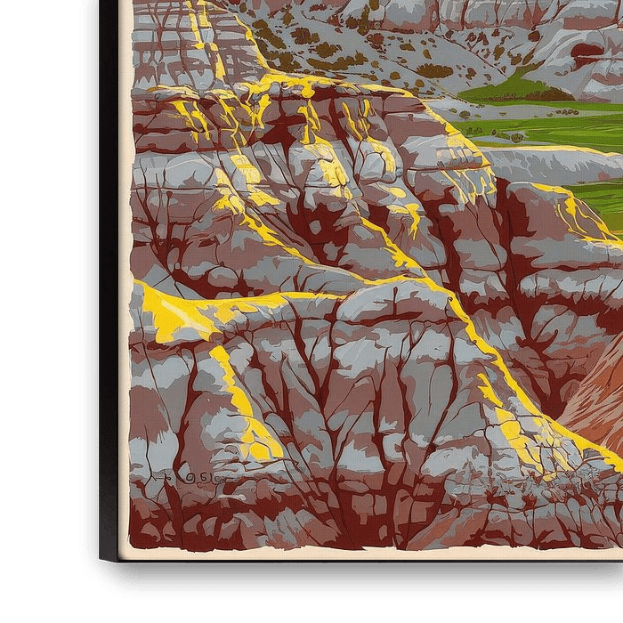Imagine the majestic badlands of South Dakota, where the rugged rocks glow under the golden rays of the sun. The contrasting colours and impressive landscape invite you to dream and lend any room a calm but impressive atmosphere. Ideal for the living room to inspire conversations and memories.