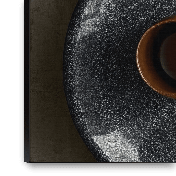 This serene still life embodies Japandi style and feng shui principles. A black ceramic bowl with two brown bowls forms a balanced contrast with a branch of cherry blossoms. The neutral background enhances the peace and harmony. This composition evokes inner calm and illustrates how sturdy ceramics and fragile blossoms can merge into a…