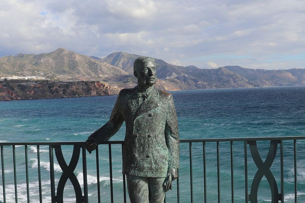 Statue on Balcony of Europe of old Spanish king. Today a restaurant sits below this point.