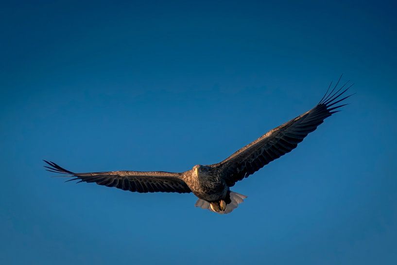 Bald eagle over Trollfjord near Svolvær blue sky by Erwin Floor