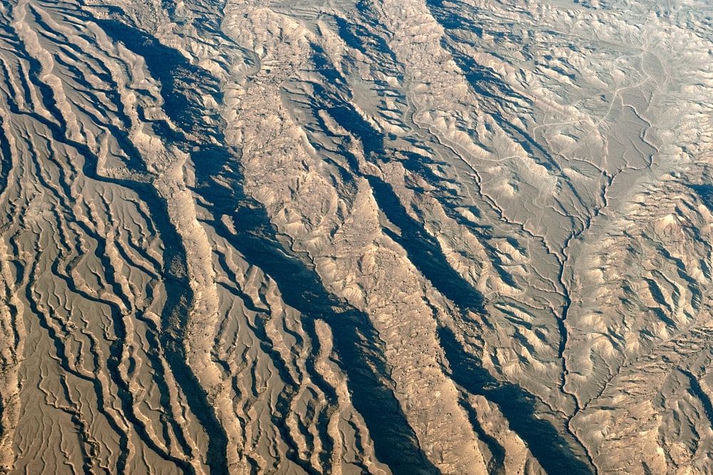 Pakistan Aerial image Mountains in Baloschistan showing water erosion towards the valleys.