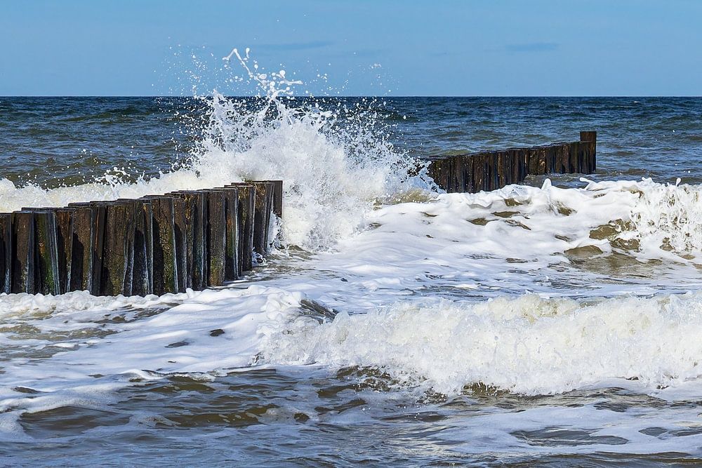 Baltic Sea coast with groyne at the ghost forest near Nienhagen.
