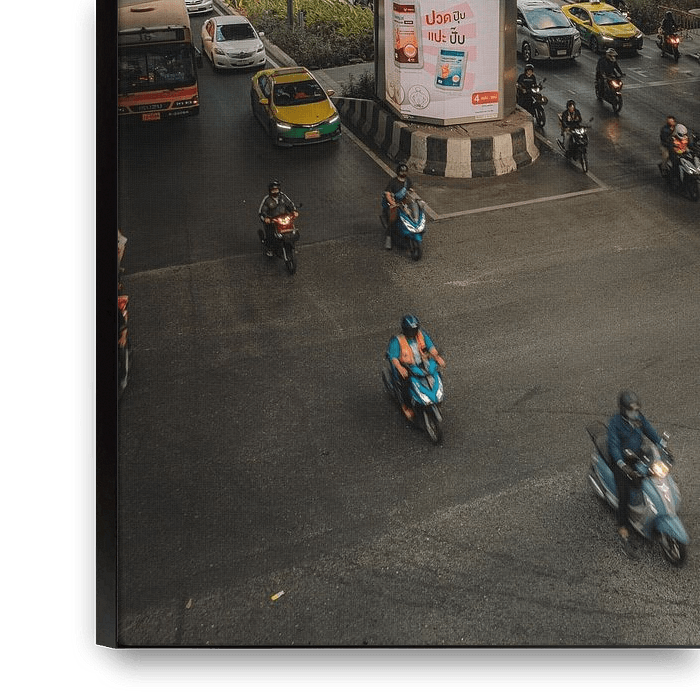 Buy the photo Bangkok Citylife: Urban traffic chaos under Skywalk by NZME Photography on canvas, ArtFrame, poster and wallpaper, printed on demand in high quality.