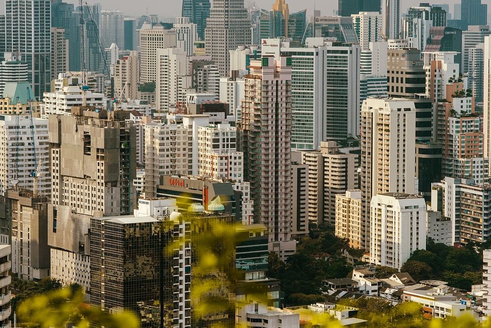 Bangkok Skyline as seen from Khlong Toei. Visible is Sukhumvit and downtown Bangkok.
