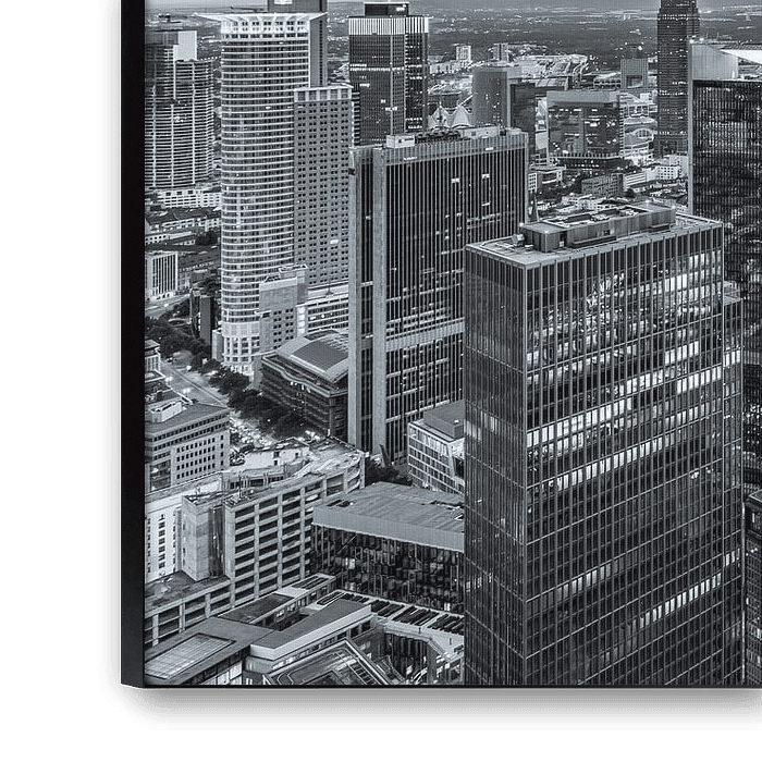Buy this landscape artwork Banking district in Frankfurt am Main - Monochrome by Werner Dieterich on canvas, ArtFrame, poster and wallpaper, printed on demand in high quality.