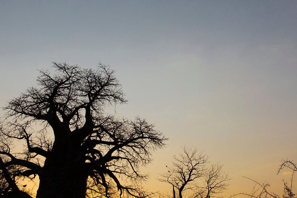 Baobab tree in Botswana at sunrise, Africa