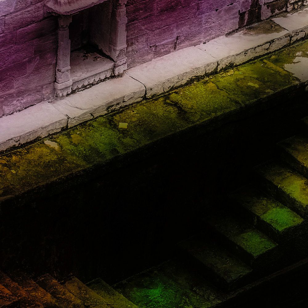 Imagine, suddenly the ground opens up in front of you and you look into the depths. It seems as if a temple has been planted upside down in the ground with a top on the ground that normally points to the sky. The stepwells (Baoris) in India are fascinating. Hypnotic patterns are formed by the stairs that run down until they disappear under water. The stairs offer an unreal spectrum of colors, enhanced by the power of nature. Lines and shapes are enhanced or even newly created by light and shadow.