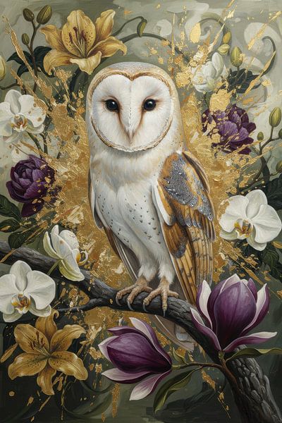 About ‘Barn owl between Orchid and Magnolia’ by By Marjolein Design