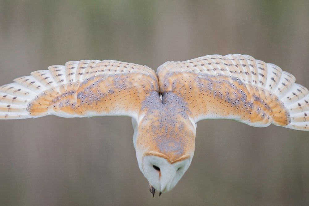 Barn owl dives to catch a mouse.