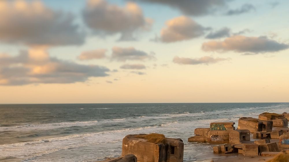 Battery Løkken Nord. A remnant of the defence works that the German occupiers built during the second world war. The defence works, better known as the Atlantic Wall, ran from Northern Norway all the way along the coast to the border between France and Spain. A more than 5,000 kilometer long defense line, which Nazi Germany during the Second World War along the west coast of the occupied territories in Western Europe has built to prevent an Allied invasion. The battery Lokken Nord was built in 1943 and modernized the following year. The original armament consisted of four Danish 12cm guns, which were replaced by German 12.7cm guns in 1944. Today battery Løkken Nord is for the most part located on the beach near Løkken. The battery consisted of 36 bunkers with a total crew of 123 soldiers. As a result of erosion, the bunkers are now mostly on the beach. Some are still accessible, others you can climb on. A place of interest on the beach.