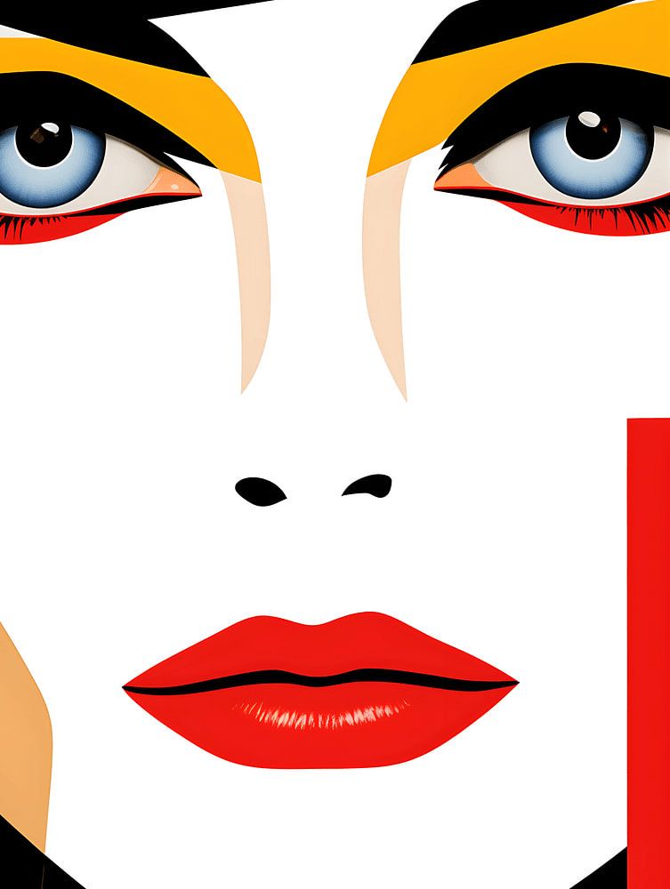 The female figure, captured in a play of angles and planes, highlights the elegance of the Bauhaus aesthetic. Every element, every colour, is purposefully placed to celebrate the sophistication of form and colour. The powerful lines and subtle contrasts create a visual symphony that both intrigues and inspires.