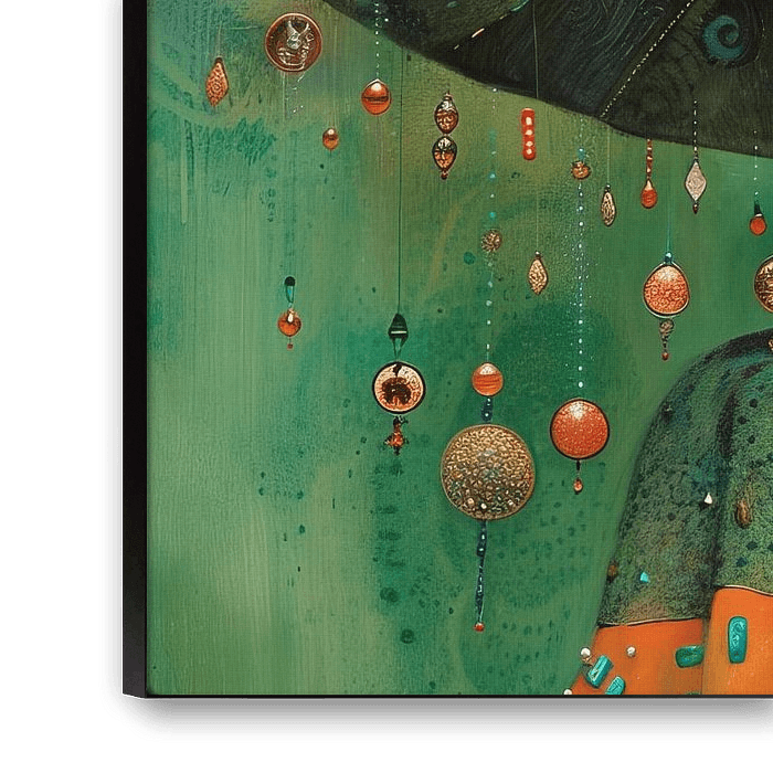 Fan lady | Emerald Dream - This woman painting shows an elegant lady dressed in an ornate cloak and greenish fan hat bedecked with jewels and fanciful embellishments.