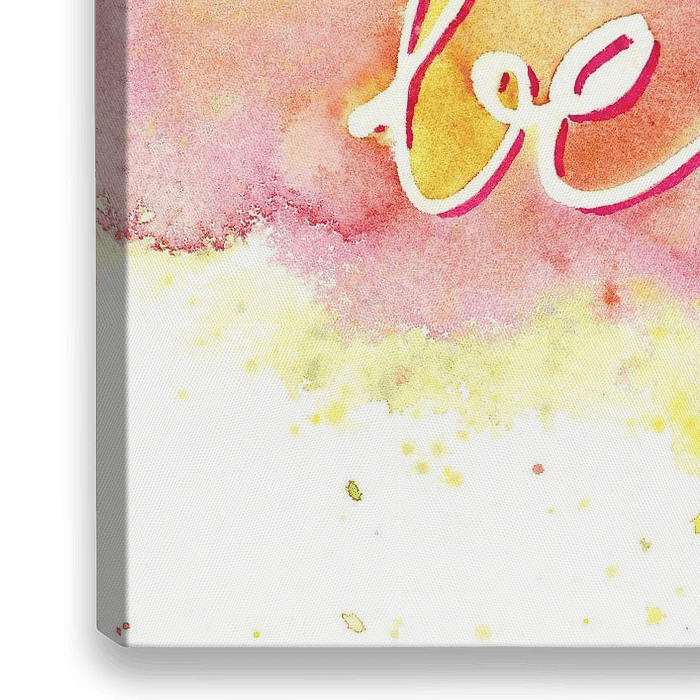 Be creative! Lively splashes of colourful watercolours form a vibrant background in rainbow colours, on which the words "Be creative" are elegantly written by hand in white. The splashes appear random yet create a harmonious and cheerful composition. This colourful, inspiring watercolour painting was hand-painted by artist Karen Kaspar.…