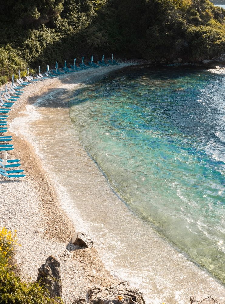 This beautiful beach on Corfu is a true gem! Beautiful nature and lovely clear blue water with a cute white house in the background. This is pure enjoyment!