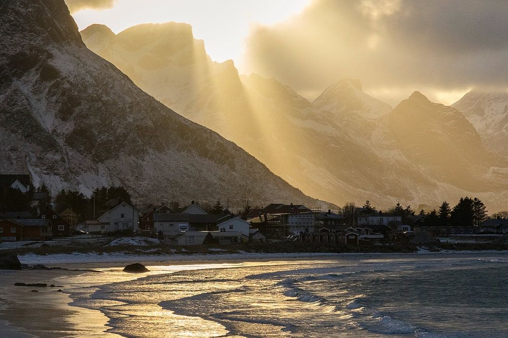 This photo was taken at the beach in Ramberg, on the Lofoten Islands in Norway. Within the hour, we had several weather conditions, including a sun coming through the clouds. Magical moment!