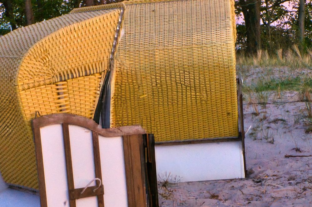 Beach chair on the Baltic Sea beach. Coastal landscape by the sea.
