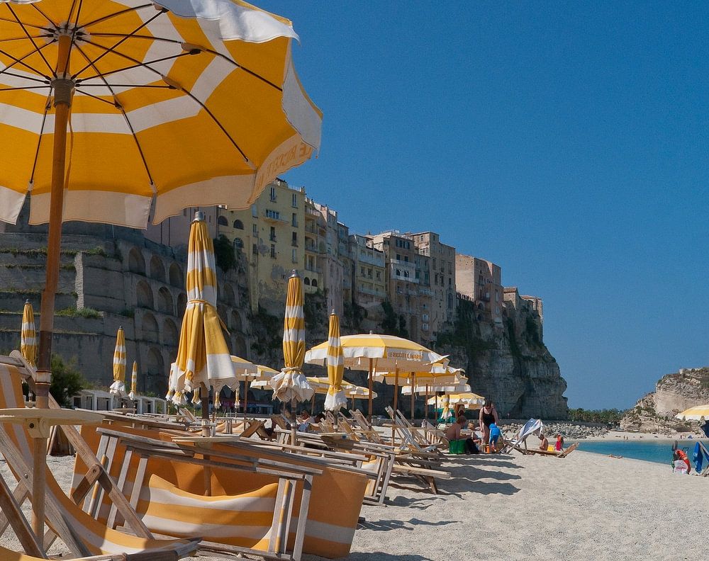 About "Beach with sun loungers and umbrellas, Tropea, Calabria, Italy"