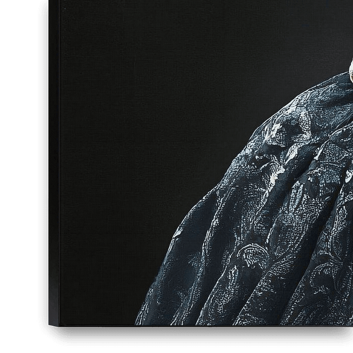 This unique portrait shows a bear dressed in magnificent aristocratic attire, as if he had stepped straight out of a royal portrait gallery. With his detailed gold collar and elegant coat, he exudes both power and sophistication. The design has a classic and timeless feel, ideal for those who love art that puts a twist on traditional…