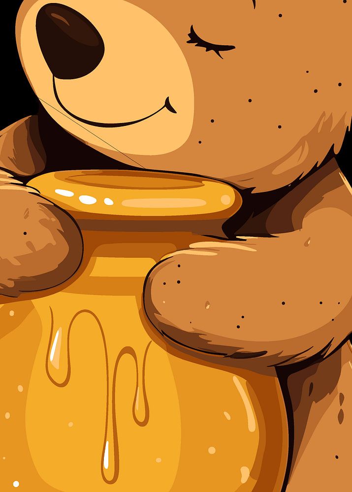 Buy this digital art artwork Bear with honey pot by Pixelbull Design as a reproduction on canvas, ArtFrame, poster and wallpaper, printed on demand in high quality.