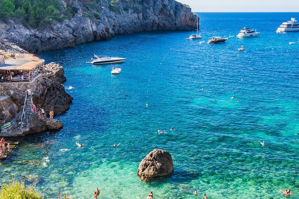 Beautiful beach of Cala Anguial, idyllic seaside on MajorcaAlex Winter Bay with sailing yacht boats at idyllic seaside on Mallorca island, SpainAlex Winter