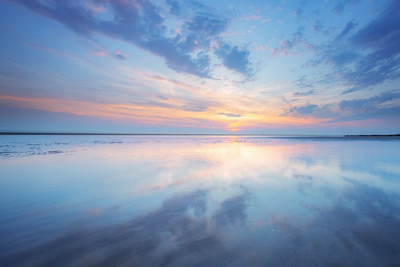During the blue hour, we still managed to capture this gorgeous cloud sky, which was also completely reflected in the water on the beach.