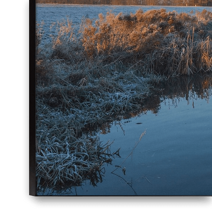 Lovely sunrise over the Oude IJssel at Laag Keppel in the Achterhoek. Light frozen fields, clear blue sky, yellow glow, flat water, everything is right!