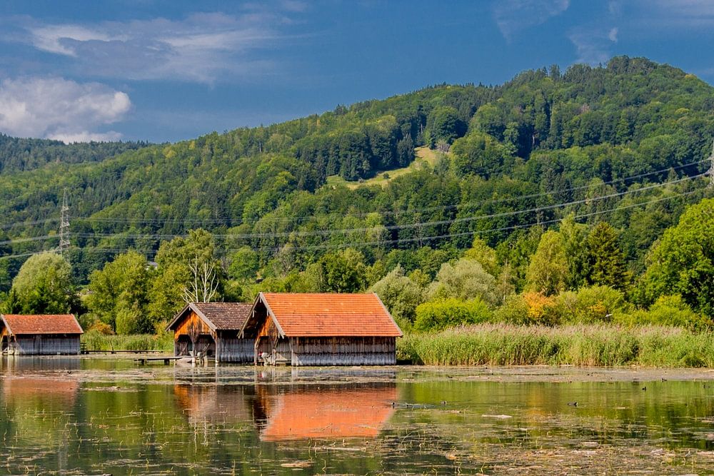 Beautiful lake landscape near Kochel am See in the alpine foothills of Bavaria