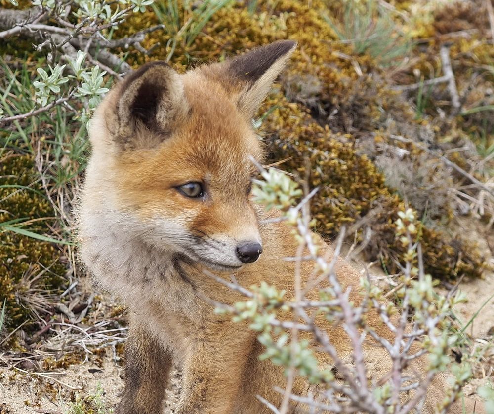 Little fox, cub in its natural habitat. Alert. Beautiful image!