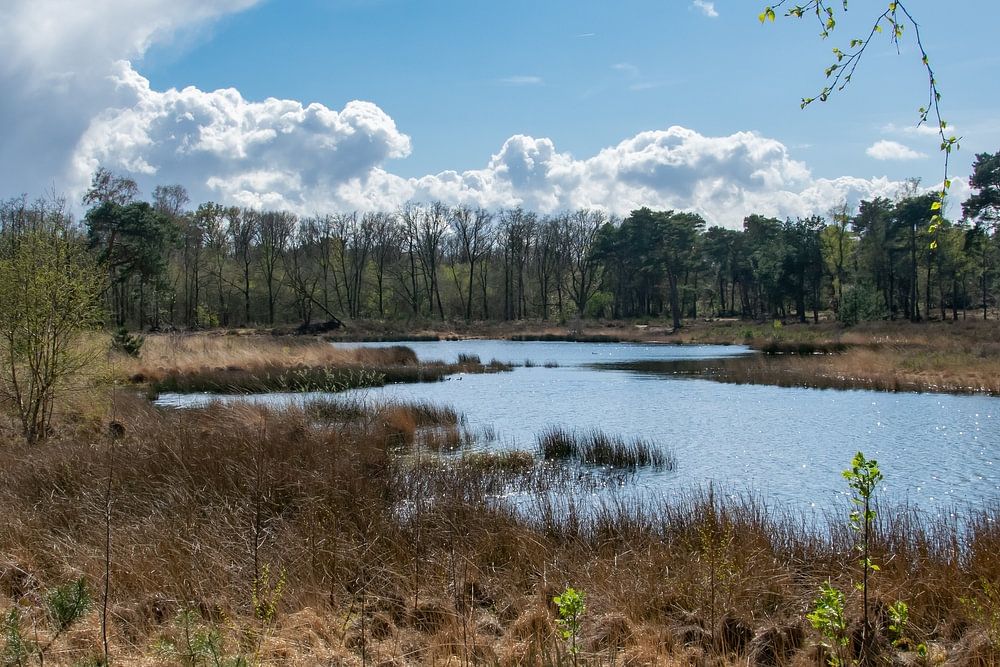 This beautiful photo print of a sunny day at the pond in the Looierheide nature reserve in Ottersum, Limburg (Netherlands) is a perfect wall decoration for nature and landscape lovers. The photo shows a sweeping view of the shimmering lake surrounded by beautiful brown heather plants and forests, surrounded by a clear blue sky with white clouds. The photo was taken in April 2022, making all the colours and details stand out perfectly. The print is of high quality and makes the viewer feel like they are in the middle of nature. The photo print is available in different sizes and can be printed on different materials. Hang this photo print in your living room, office, bedroom or other room and enjoy the soothing and atmospheric atmosphere this photo exudes every day. It is a real eye-catcher and will certainly attract the attention of everyone who sees it. A great reminder of a beautiful day in nature that you can experience again and again!