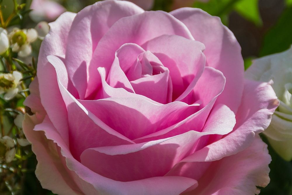 A very pretty pink rose in the middle of a beautiful festive bunch of flowers. A beautiful bunch of colorful flowers obviously does well at a wedding or a birthday.