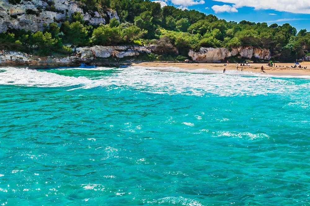 Beautiful seaside on Mallorca island, beach Cala Romantica, s'estany d'en mas, Spain Balearic islands, Mallorca, Balearic Islands, Balearic Sea, Mediterranean Sea, Spain