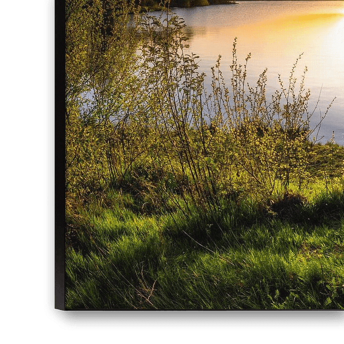 Buy this landscape artwork Beautiful sunset on a natural lake by Günter Albers on canvas, ArtFrame, poster and wallpaper, printed on demand in high quality.