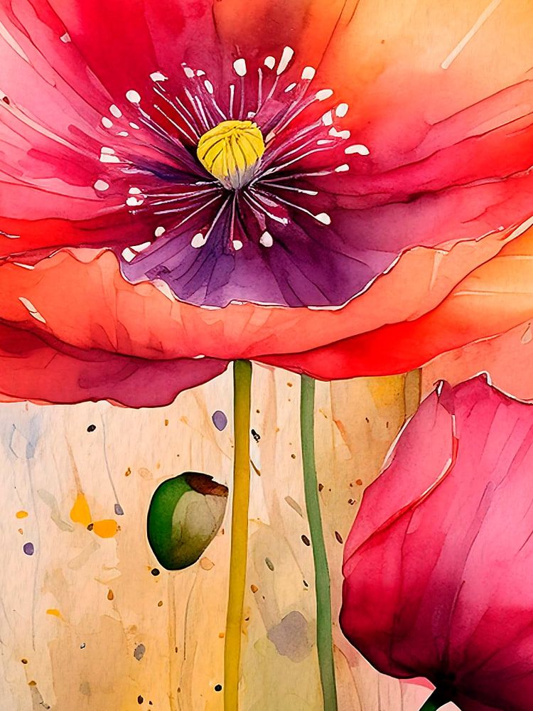 An atmospheric artwork of a pair of delicate poppies.