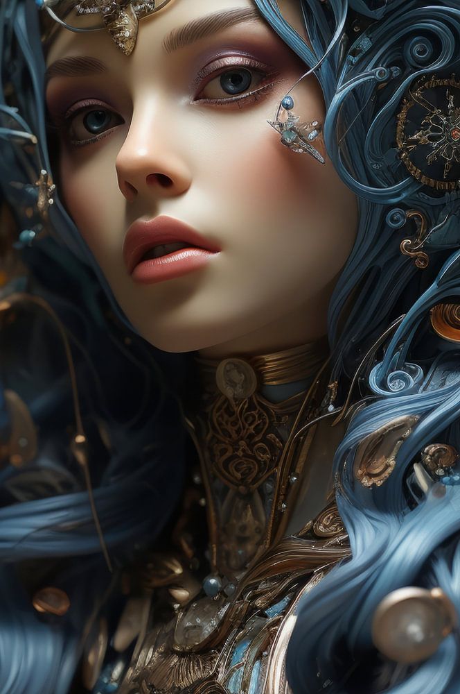 This digitally created work is a fantasy portrait in beautiful calm tones and soft flowers. A beautiful work for the wall.