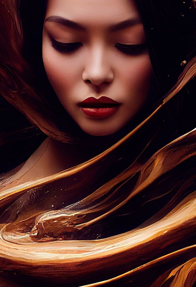A warm and surreal portrait of a woman slowly emerging from the paint.