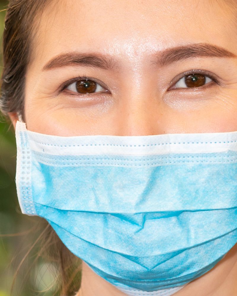 The beauty behind the mask, a young woman working on a street stall on the local coffee market in Chiang Mai northern Thailand. Photograph: Tony Taylor