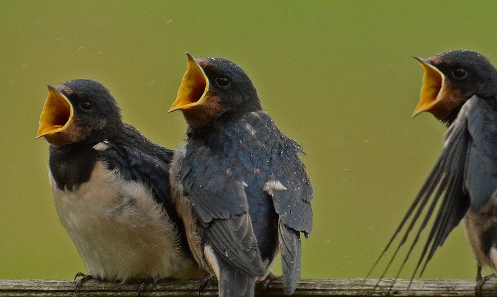 Deze jonge zwaluwen zaten hard te roepen naar hun vader en moeder dat ze honger hadden.