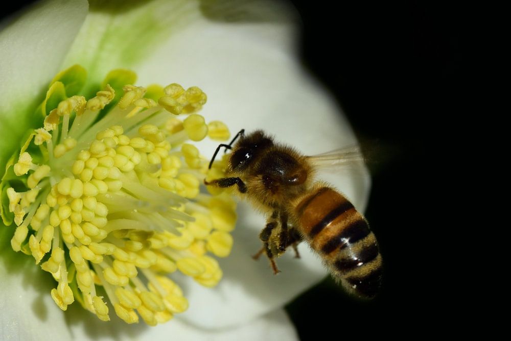 Buy this flower art Bee and Christmas Rose by Ulrike Leone on canvas, ArtFrame, poster and wallpaper, printed on demand in high quality.