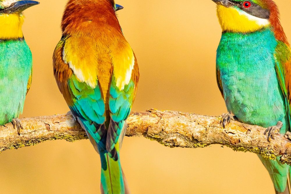 As its name suggests, the Bee-Eater feeds mainly on bees, wasps and other flying insects. It catches them in mid-air and carefully removes the sting before eating its prey. This bird is a true aerial acrobat and often hunts in groups.
