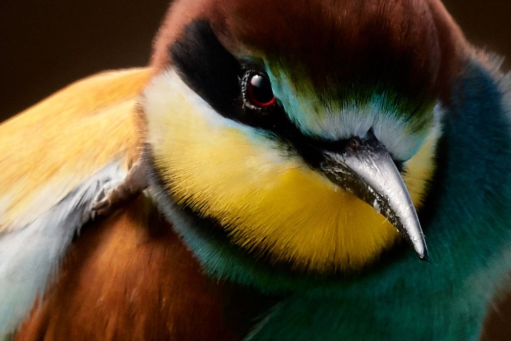 Buy this bird art Bee-eater close-up by Thomas Marx on canvas, ArtFrame, poster and wallpaper, printed on demand in high quality.