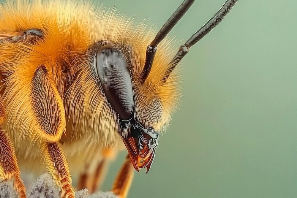 A fascinating close-up motif that captures the delicate details of a bee in warm, golden tones. Her fine hairs and expressive facial expressions add vibrant energy to the image. This artwork would make a wonderful addition to the living room, where it can stimulate conversation and bring the natural beauty of the world inside.