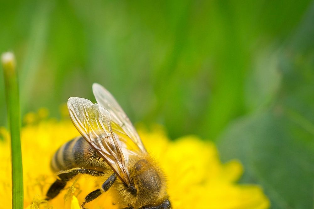 Bee on a flower collecting nectar. Insect from nature feeding. Macro shot of an insect