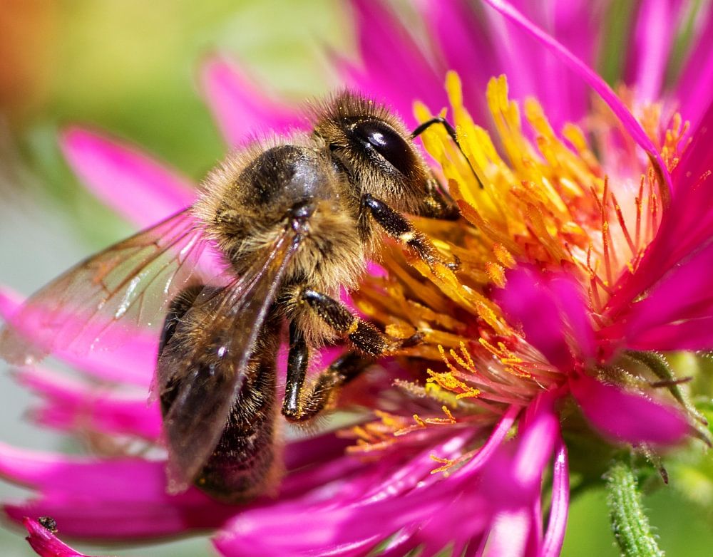 Buy this flower art Bee on an aster flower by ManfredFotos on canvas, ArtFrame, poster and wallpaper, printed on demand in high quality.