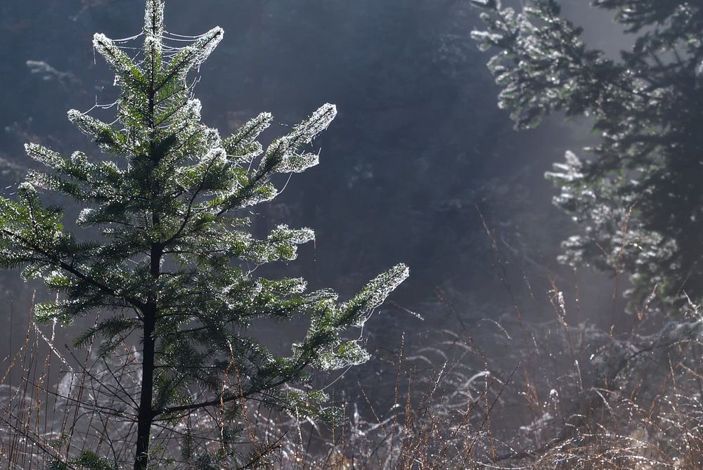 Little spruce tree in morning sunlight. Friesland, the Netherlands