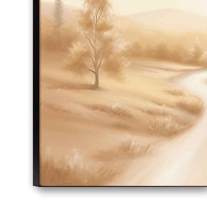 Painting with calm beige colours: Serenade of Peace - a landscape painting on the theme of tranquillity and beauty of simplicity. Calm beige and pastel colours give peace and tranquillity.