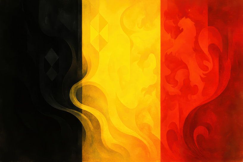 Buy this lion art Belgian flag with elegant waves by Imperial Art House on canvas, ArtFrame, poster and wallpaper, printed on demand in high quality.