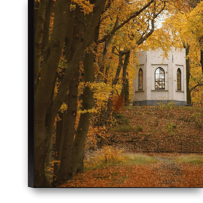 The forest of the Netherlands is beautiful in autumn. In autumn, the Belvédère of Leyduin is surrounded by beautiful orange trees along the long avenue on which it lies. The orange leaves contrast beautifully with the white building.