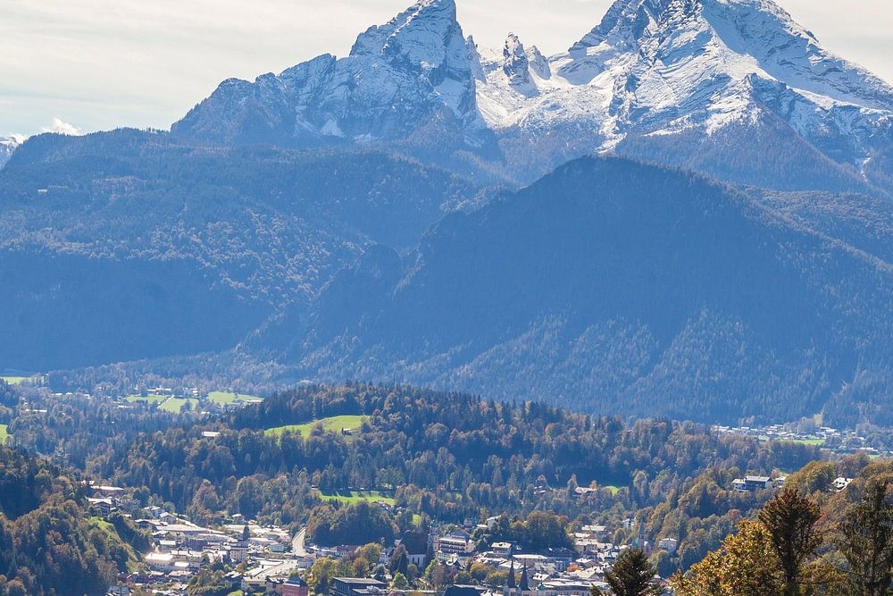 Berchtesgaden with Watzmann in autumn, Berchtesgaden, Berchtesgadener Land, Upper Bavaria, Bavaria, Germany