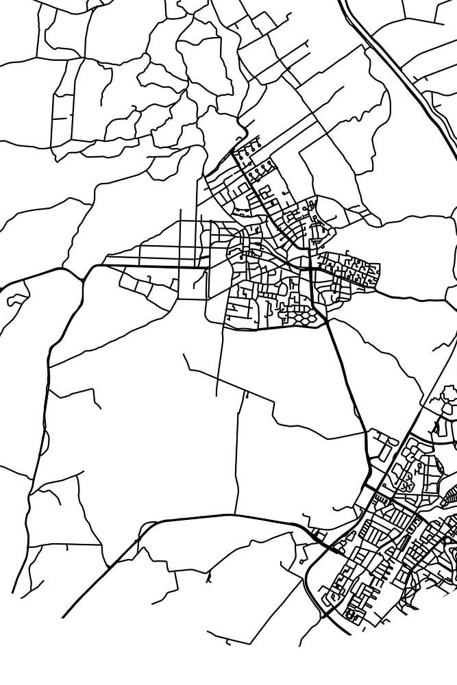 Black and white map, street map or street plan of Bergen (NH). Bergen (NH) is located in the municipality of Bergen(NH.), province of North Holland. The city map includes all public roads in Bergen (NH). Furthermore, the map is provided with the coordinates of the center of Bergen (NH).